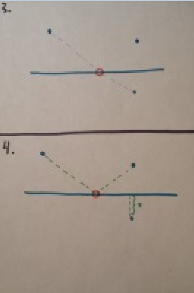 Problem: Given a line and two dots randomly placed above it (as seen in figure 1), what’s the shortest path from one dot to the other which bounces off the line?