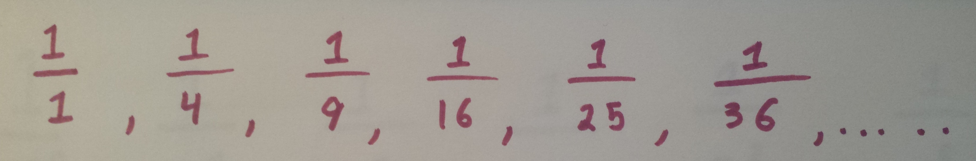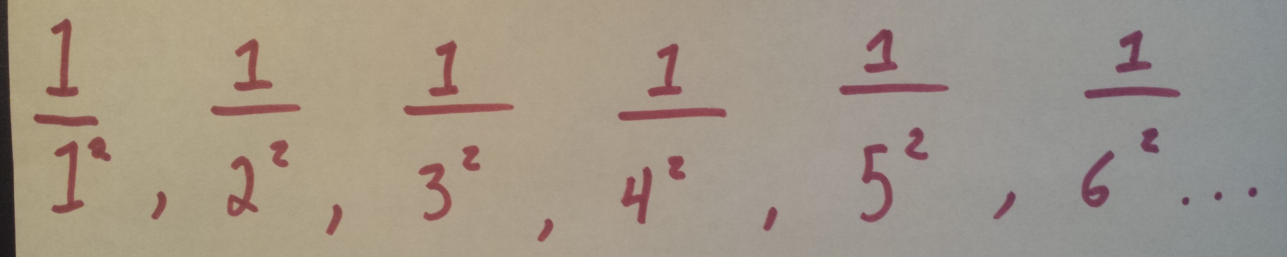 Soak that in for a second. You take this list, this infinitely long list, add up all the terms, and you get the ratio of the circumference of a circle to its diameter squared, divided by six. Plugging this into the calculator, we see the result is 1.644934… on and on and on. The first time I saw this result, I promptly began working towards a B.A in Mathematics, I kid you not. I’m sad that I can’t really go through the proof here, which is equally striking, but I just had to share this result.