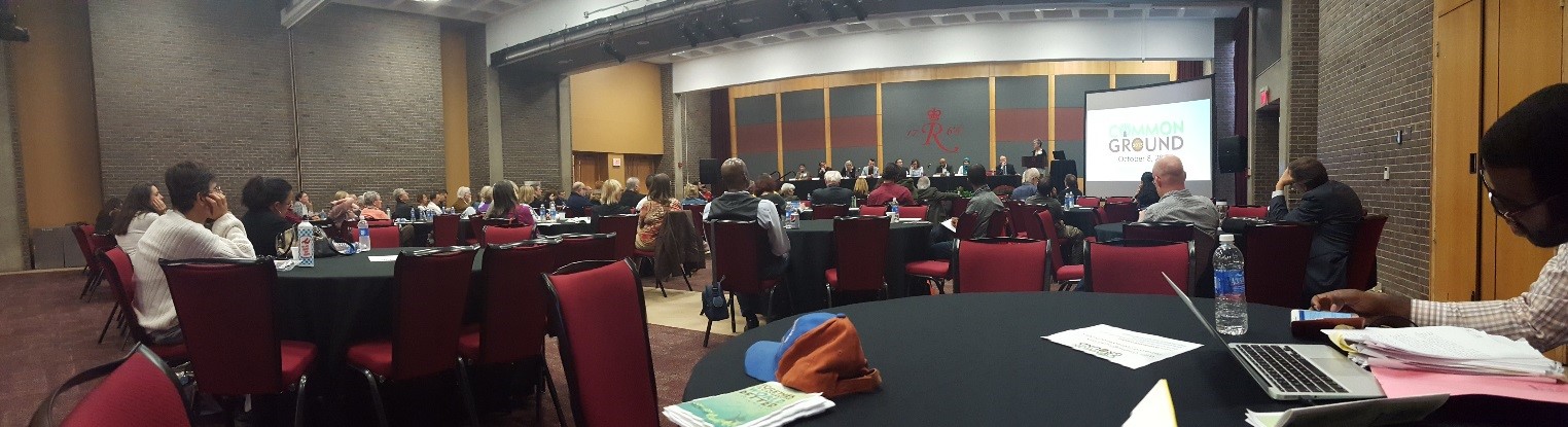 The collective IQ at Common Ground 2015 is higher than average—and the attendants seem to know it. Bouncing off the walls of College Ave’s spacious Student Center, one hears conversations that are cerebral, certain, and serious—as they should be: this is serious business. One side of the room is lined with stands displaying impressive collections of humanist paraphernalia. Papers, pins, pamphlets, pads, books, advice—you name it. Among other big names, the American Humanist Association (AHA) and the Rutgers Humanist Chaplaincy are here. The center of the room is divided by an enormous buffet of middle-eastern food. I am only slightly embarrassed to say that this is the first thing that caught my attention.