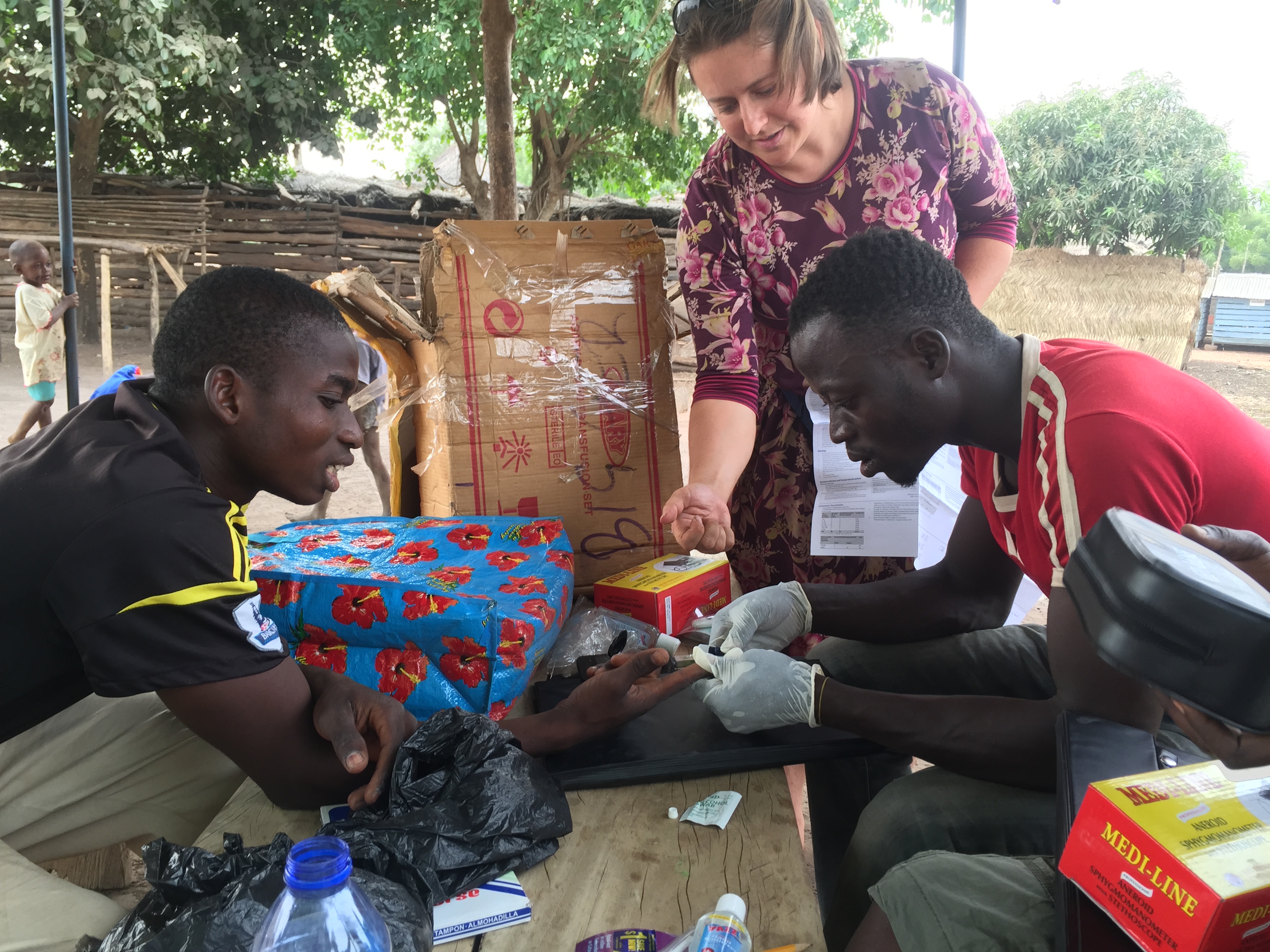 Somed checks Mohammed’s blood sugar Published February 29, 2016 at 3264 × 2448 in Setting Up a Medical Screening Project in Kukuo, Ghana ← Previous Next → Somed checks Mohammed’s blood sugar.