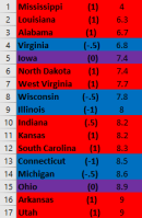 I’d also like to note that out of all 23 indicators, this is where there is the most “socialist” agreement across all 50 states. Every single state has guaranteed every student, regardless of ability to pay, schooling through high school. It’d be interesting to see how states compare when this guarantee is removed.