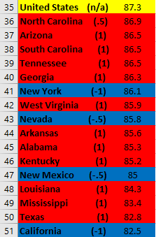 States Making America Great – Percent Above US Average