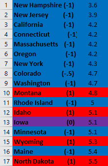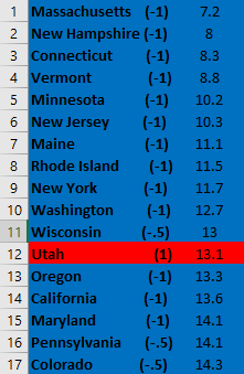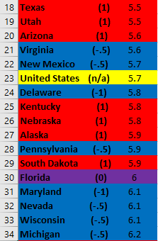 Using CDC data, below are how states rank.