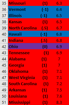 Using CDC Data, below are how states rank.
